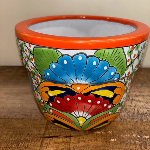 Our Mariposa Talavera Pots are hand-made and hand-painted in Mexico, bringing vibrant Southwestern charm to any space. Perfectly sized for 1-gallon and 5-gallon plants, these pots make stunning displays or thoughtful DIY gifts. Each 9″ × 8″ pot is unique and carefully packaged for safe delivery. Add authentic desert artistry to your home or garden today.